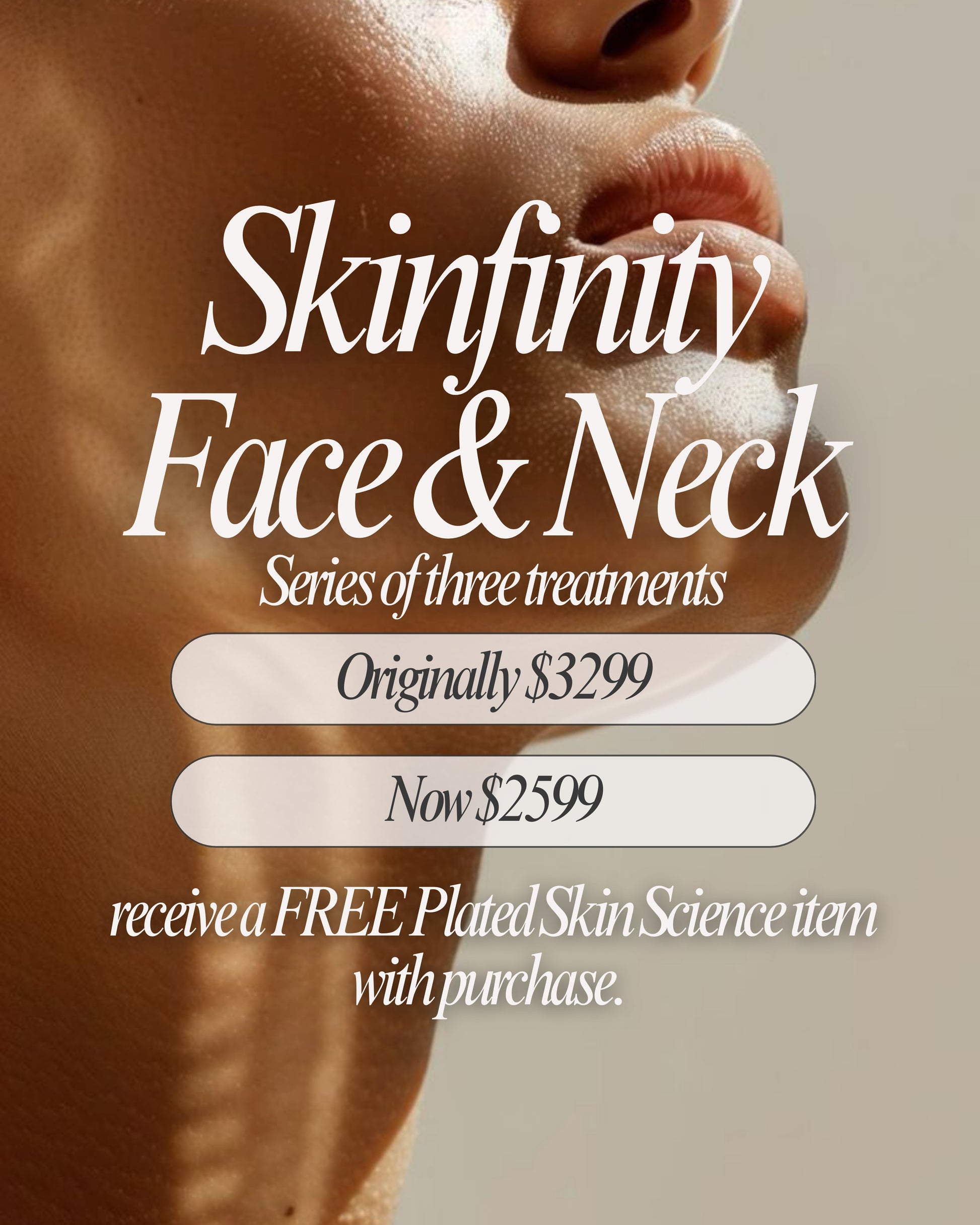 Invest in advanced skin treatments with our Skinfinity Face & Neck package, which includes three (3) treatment sessions.